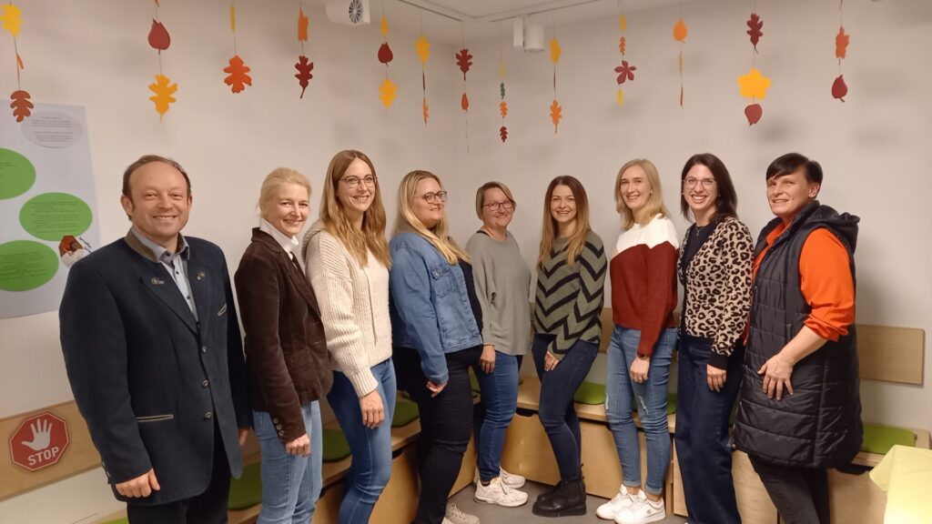 v.l. Bürgermeister Herr Hirtreiter, Frau Regina Hackl (Einrichtungsleitung), Frau Martina Ettl, Frau Andrea Herrler, Frau Bianca Kinzkofer, Frau Ramona Baumann, Frau Verena Müller, Frau Sandra Ertl und Frau Sandra Inhofer (stv. Einrichtungsleitung)